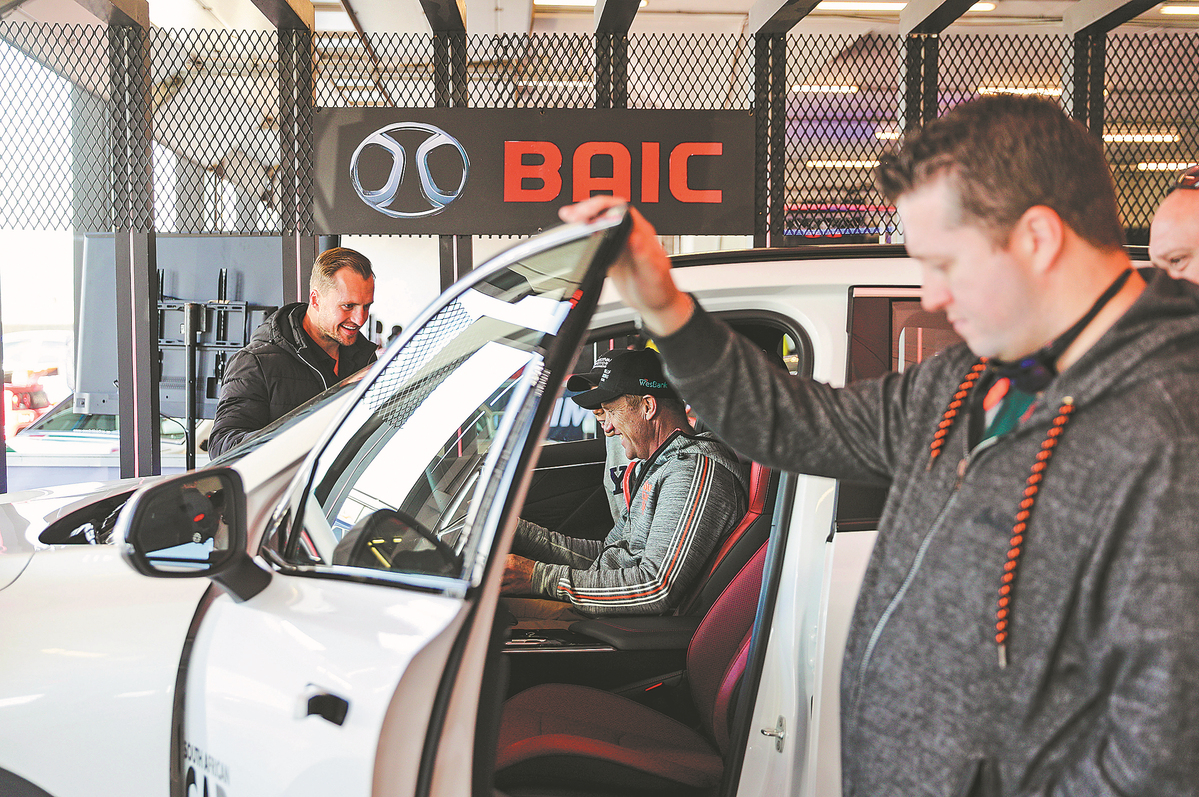 Visitors inspect a BAIC vehicle at the 2023 Festival of Motoring Johannesburg in South Africa on Aug 27. [ZHANG YUDONG/XINHUA]