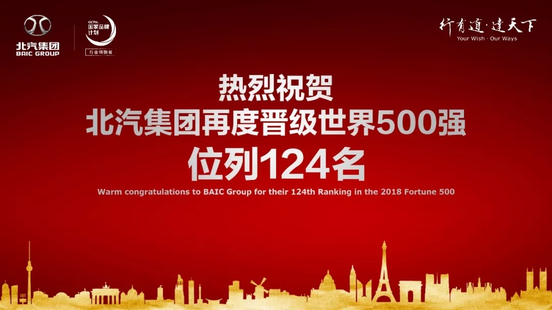 At 19:30 on July 19, 2018 Beijing time, the US magazine Fortune officially announced the 2018 ranking of the Fortune Global 500. BAIC Group ranked 124th in Fortune Global 500 with an operating income of US $ 69.591 billion, up 13 places from 2017. This is the sixth consecutive year that BAIC Group has been short-listed in the Fortune Global 500 and has kept raising in the list year after year. This latest ranking highlights the strong momentum of BAIC Group's reform, transformation and high-quality development.