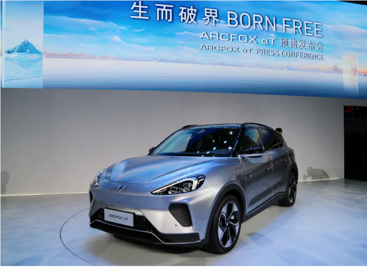 This is ARCFOX αT, the first mass-produced model of BAIC’s high-end new energy vehicle brand ARCFOX. Developed by BAIC in collaboration with Magna and Huawei, it’s the world’s first auto product commercially adopting the 5G technology, with the NEDC duration as 653km, the 0-100km/h acceleration time as 4.6 seconds, and the overall advanced driving assistance reaching L2.5.