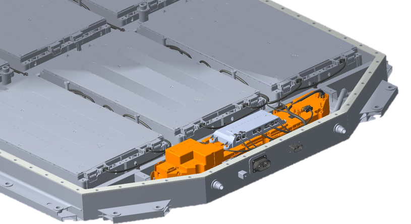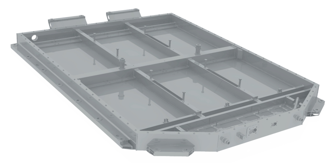 為確保托底安全,電池底部采用高強(qiáng)鋼板進(jìn)行底部防護(hù),能夠通過嚴(yán)苛底部球擊測試。底部板噴涂有PVC涂層,有效防止石擊磕碰損傷。同時(shí),電池底護(hù)板由螺栓固定于箱體框架上,遇磕碰損壞后,可單獨(dú)對(duì)底護(hù)板進(jìn)行拆卸更換,節(jié)約維修成本。極狐電池采用“干濕分離”的熱管理設(shè)計(jì),電池箱體底板集成液冷板,即在箱體底板內(nèi)形成冷卻液管道,冷卻液即使在極端情況下發(fā)生泄漏,也不會(huì)泄漏到模組高壓區(qū)域,確保用電安全。