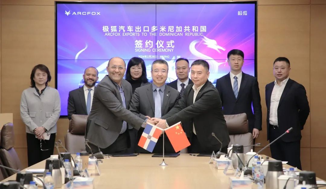 2月26日,“極狐汽車出口多米尼加共和國簽約儀式”在藍(lán)谷舉行。北京藍(lán)谷極狐汽車科技有限公司與來自多米尼加的SERTELSA SOLAR公司和青島唐百進(jìn)出口有限公司簽署合作協(xié)議,就進(jìn)入多米尼加市場事宜達(dá)成共識。此次協(xié)議的簽署,標(biāo)志著極狐汽車正式進(jìn)軍拉美市場。