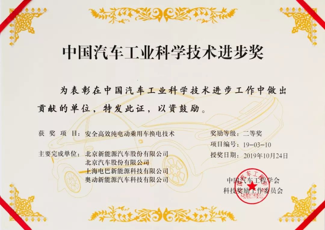 2019年度“中國汽車工業科學技術獎”頒獎典禮于10月24日在中國汽車工程學會年會閉幕式上舉行。經過嚴格的形式審查、初評、終評及評審委員會審定,北汽集團再次獲得一等獎,并以一等獎1項、二等獎1項、三等獎2項的驕人總成績續寫了2018年的輝煌。