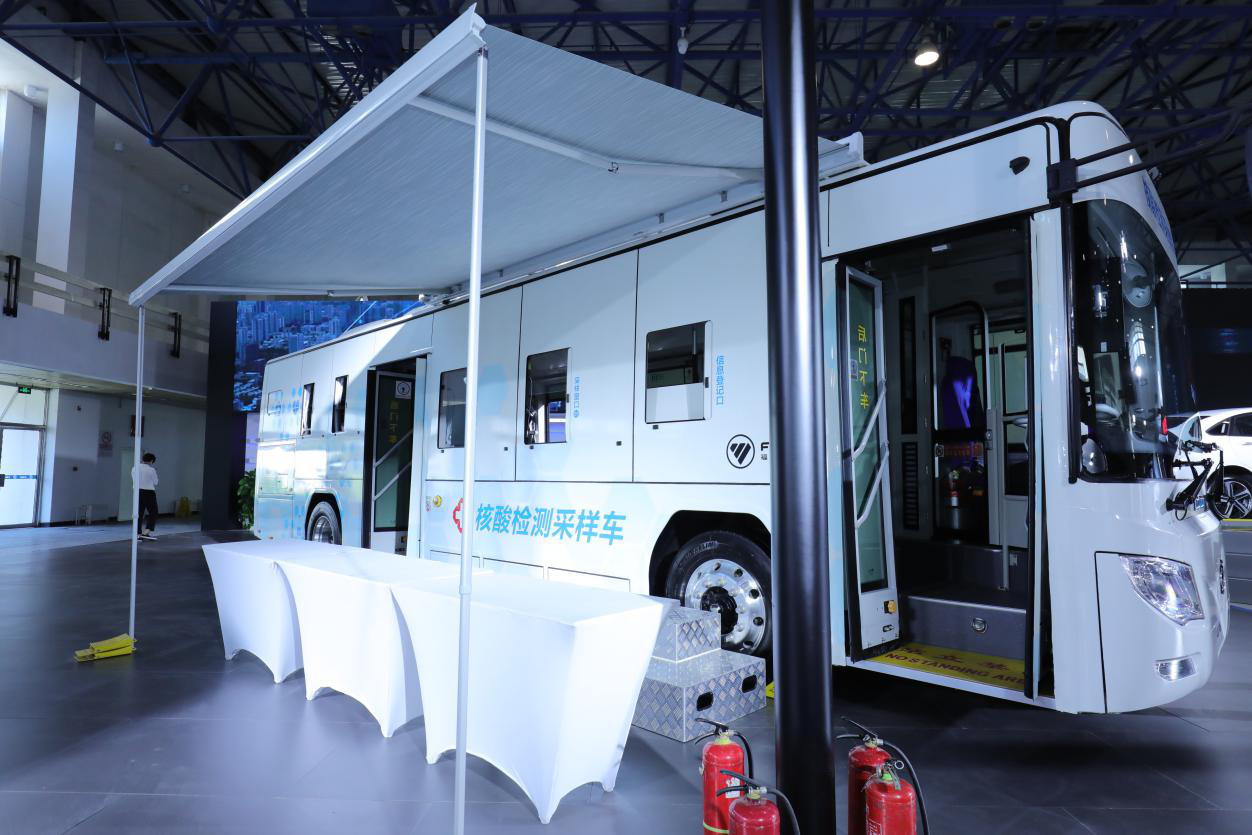 北汽福田歐輝開發的“核酸檢測采樣車”系全國首創,是提供良好采樣環境的純電動醫療車,設置4個采樣窗口,一小時可檢測1000人,已于6月底投入使用。