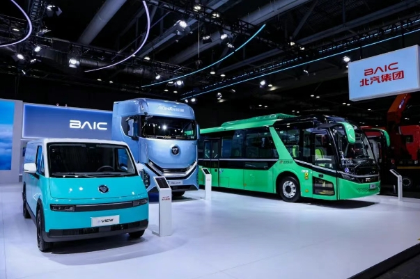 在“智變·新程”北汽集團展臺,北汽集團旗下自主乘用車品牌和商用車品牌首次在國際化車展上同臺亮相。北京越野BJ40 PLUS右舵版、新X55右舵版、北汽極狐阿爾法S5、北汽極狐阿爾法T5及享界S9增程版等5款面向國際市場的乘用車亮相;作為中國商用車第一品牌,北汽福田帶來了風景i(eView)、電動通學車、歐曼銀河9等3款重磅產品。
