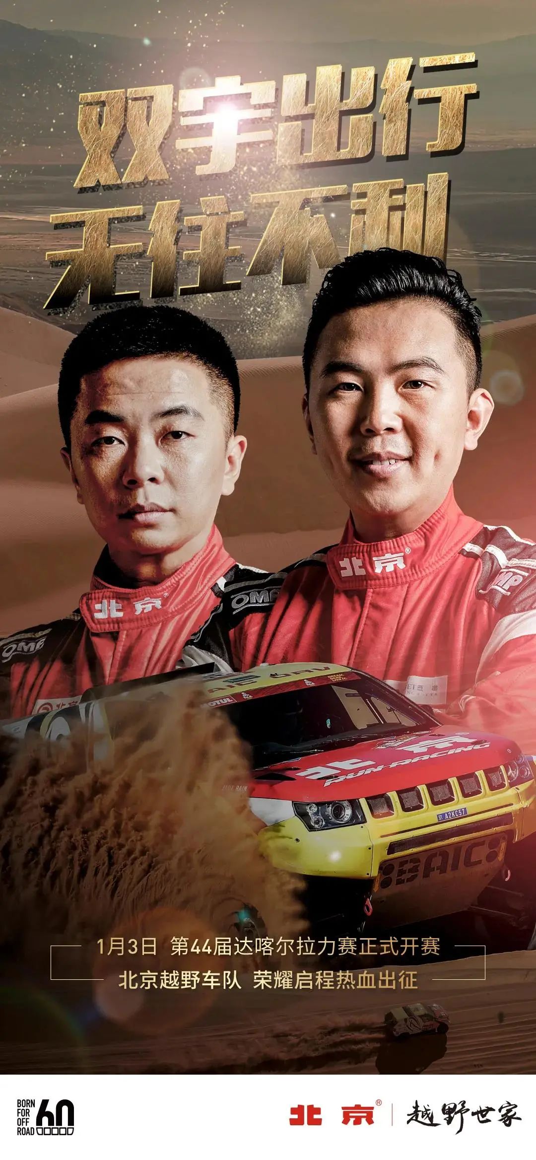 本屆賽事,北京越野車隊派出張國宇、潘宏宇兩員猛將參加。車手張國宇大賽經驗豐富,曾斬獲諸多榮譽,領航員潘宏宇同樣擁有豐富的經驗,此次二人攜手劍指大漠,“雙宇”合璧無往不利。另外,本次出戰的北京越野BJ40戰車,經過特殊設計,整車重量分配更加平衡、動態操控更好響應、發動機更耐久耐高溫。無論是戰風沙、越山丘還是攀陡坡,BJ40動力十足,從容應對達喀爾拉力賽的兇險路況,全方位為車手安全護航。此次參賽,北京越野車隊無懼挑戰,已做好馳騁賽場的準備。