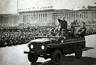【毛澤東主席站在BJ212車上閱兵】