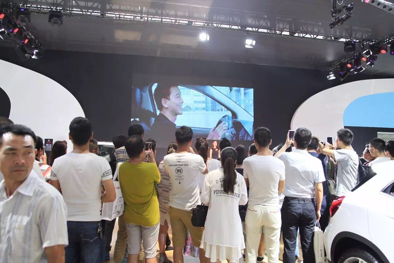 西安車展上,北汽展臺播放的宣傳片吸引了眾多觀眾