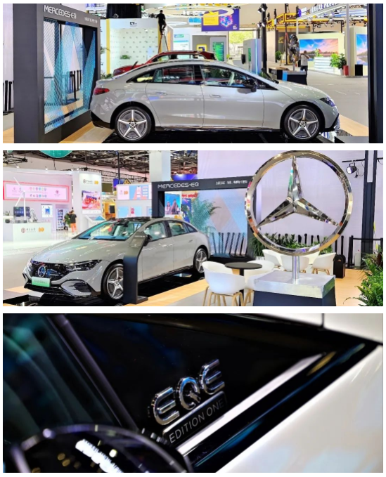 綠色低碳、可持續(xù)發(fā)展,“雙碳”元素在服貿(mào)會(huì)上隨處可見。設(shè)在國(guó)家會(huì)議中心的年度主題展區(qū)里,三叉星徽的標(biāo)志熠熠生輝,不時(shí)有觀眾近距離參觀擺放在展臺(tái)上的EQE和EQB兩款純電動(dòng)車。